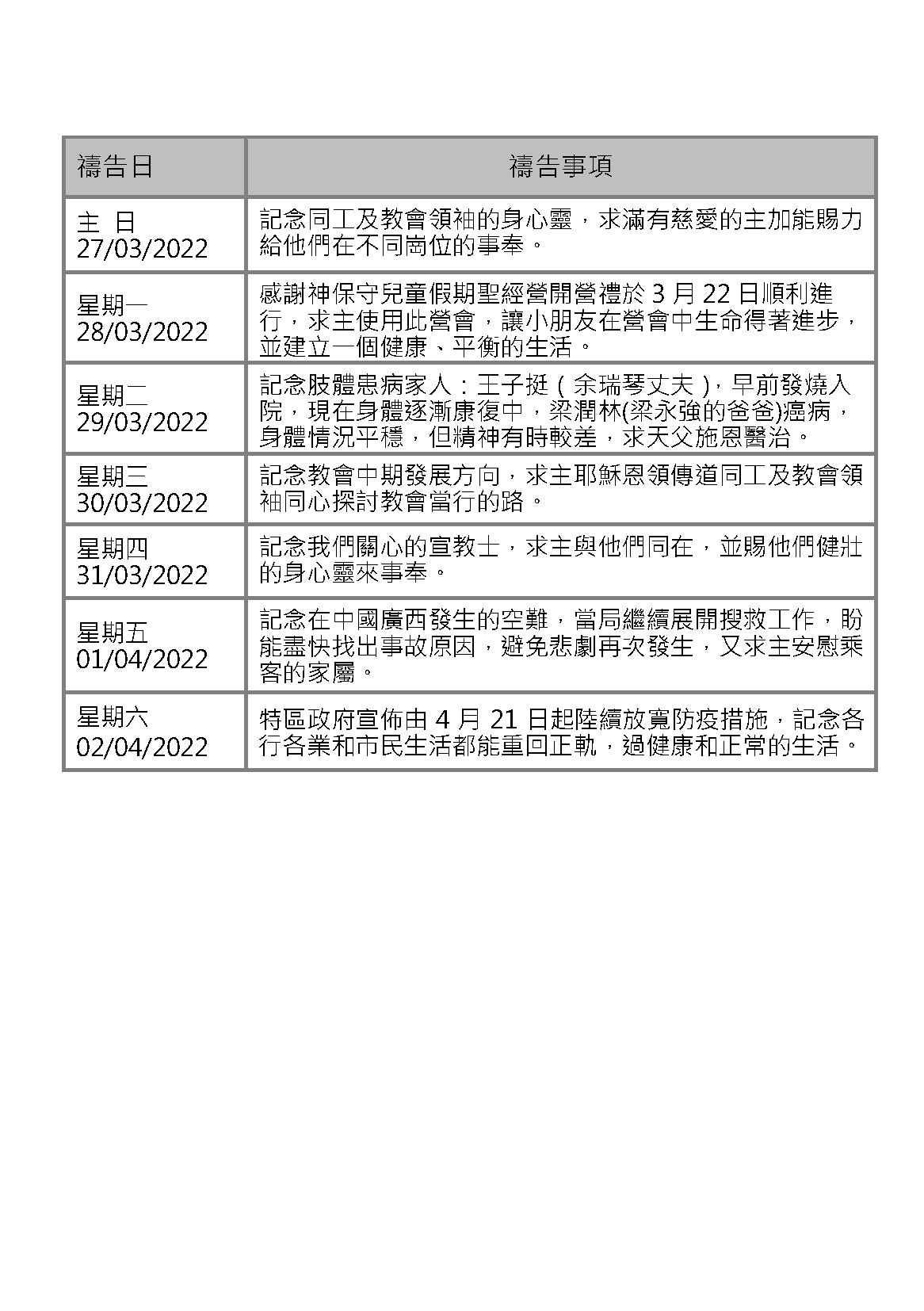 代禱事項